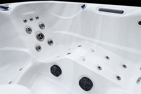The spa end is the perfect space for up to 3 adults (2 sitting + 1 lounging) with it’s powerful hydrotherapy jets and LED lighting system. The swim end has powerful and adjustable jets.