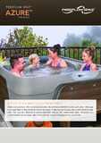 Deep and spacious, the Azure spa provides the perfect antidote to aches and pains. Massage your tired feet on the perfectly placed foot-jets or lean back and enjoy the comfortable lounge seat. This spa also features a serene waterfall, and an LED underwater light. Wrapped in a sophisticated wood siding, the Azure will add a touch of elegance to your home.