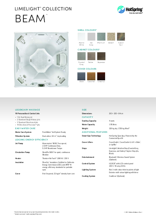 Limelight Collection spas feature an Energy Smart™ System to reduce energy consumption. You can have peace of mind knowing that your spa will be hot and ready when you are, while keeping energy costs low.