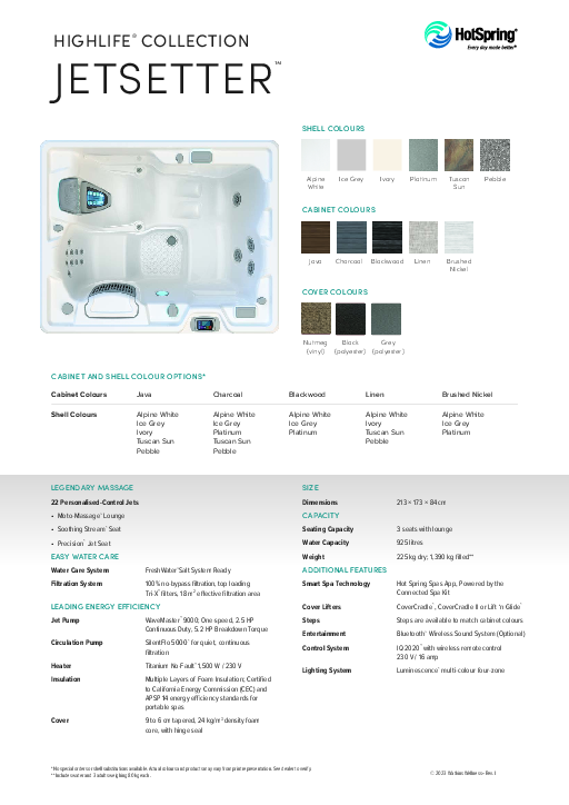 Highlife Collection spas offer our very best in energy-saving design with a comprehensive Energy Smart™ system. Your spa will be hot and ready when you are, while keeping energy costs low.