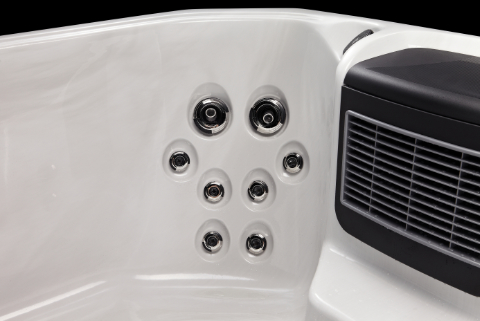 You can sit back and relax in the spa whilst listening to your favourite songs through the two mounted speakers which come as standard. Our hot tubs come with bluetooh connectivity! The mounted speakers also have colour changing LED lighting! Music is another way to increase the users enjoyment whilst using thier hot tub! Downtempo music can cause the brain to synch up with the beat and create alpha brain waves. These waves are often present when we’re awake, but relaxed. Listening to smooth jazz, especially combined with nature sounds like waterfalls or thunder, can be especially soothing.
