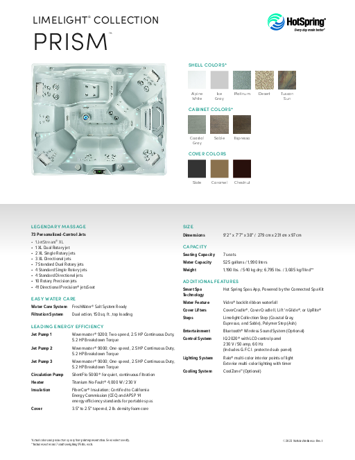 The seven-seat Prism features a relaxing lounge, an Adirondack-style seat with wrist, calf and foot jets, and the FootStream™ XL jet for incredible foot and leg massage.