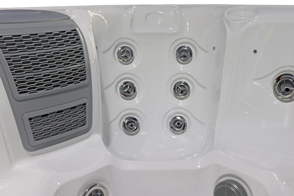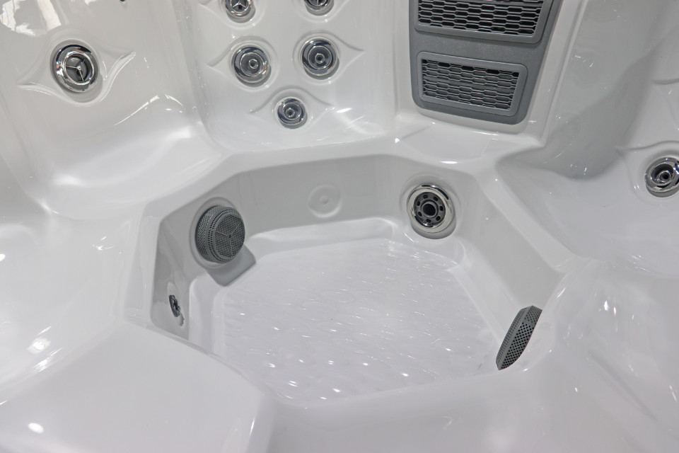 This hot tub is equipped with a state of the art no-bypass filtration system and an ozone disinfection system. Better filtration means more joy and longer product life.