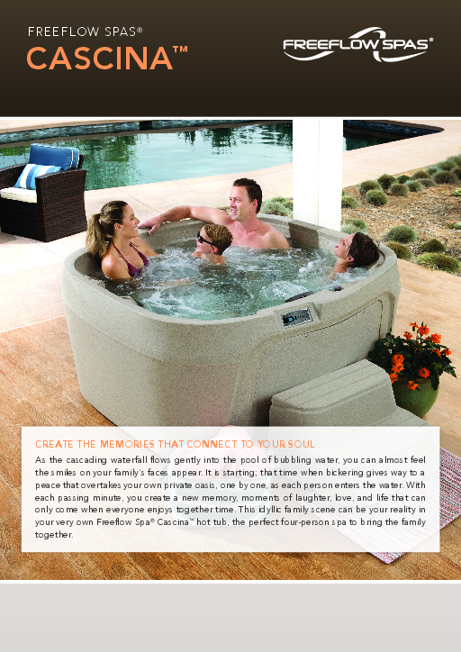 The Cascina spa was designed to bring you maximum comfort at a minimum price and offers a much deeper soaking experience than other spas of comparable size. It has a built-in cascading waterfall and is fully foamed to keep electricity costs low.