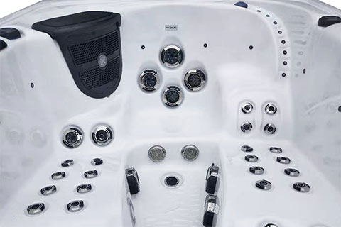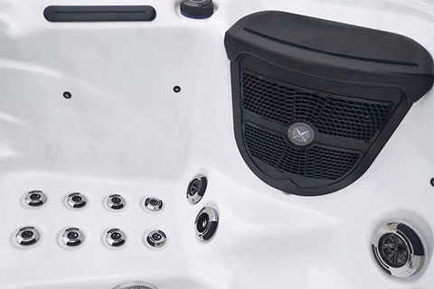 You can sit back and relax in the spa whilst listening to your favourite songs through the two mounted speakers which come as standard. Our hot tubs come with bluetooh connectivity! The mounted speakers also have colour changing LED lighting! Music is another way to increase the users enjoyment whilst using thier hot tub! Downtempo music can cause the brain to synch up with the beat and create alpha brain waves. These waves are often present when we’re awake, but relaxed. Listening to smooth jazz, especially combined with nature sounds like waterfalls or thunder, can be especially soothing.